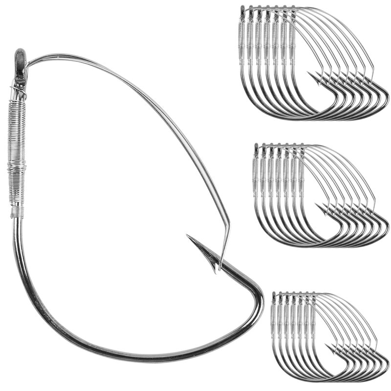 - Fishing hooks with Wire weed guard accommodates your lure snag-free, allowing you to cast under docks, into thick cover, and other places that normally cause your lure to hang-up or snag