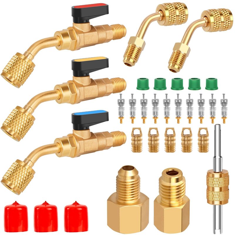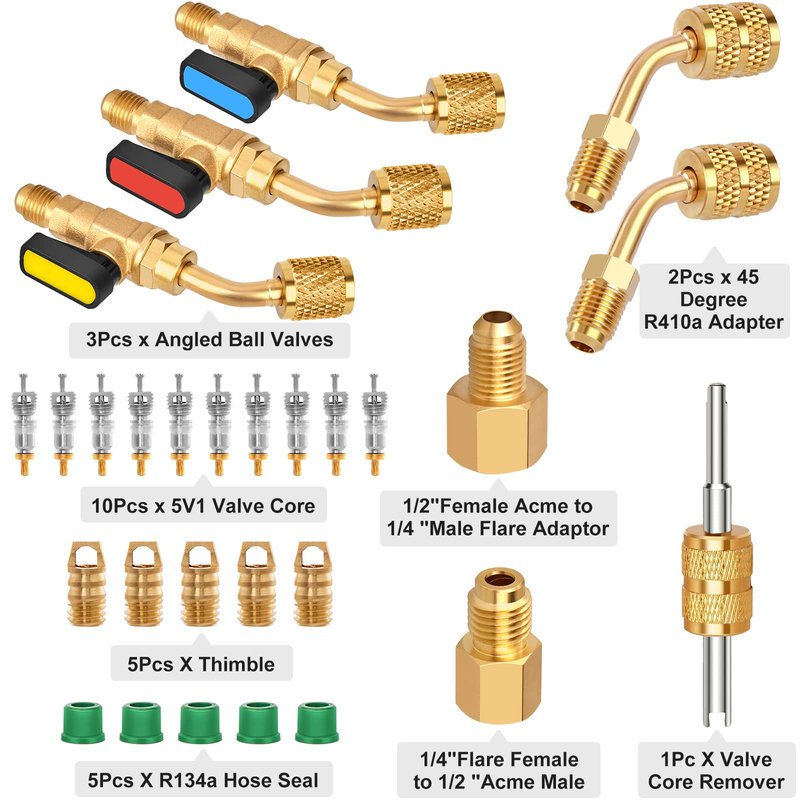 - Material: Our air conditioner refrigerant angled ball valve kit is made of solid brass, which makes it corrosion resistant, durable and sturdy, provides a longer service life.