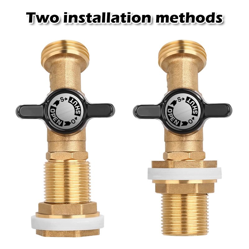 - 💧Heavy Duty 3.2 oz Solid Brass Bulkhead Fitting, 1/2" Female to 3/4" Male water tank connector bulkhead tank fitting. Heavy duty 3/4"water outlet no kink quarter turn solid brass ball valve can conntect with garden hose