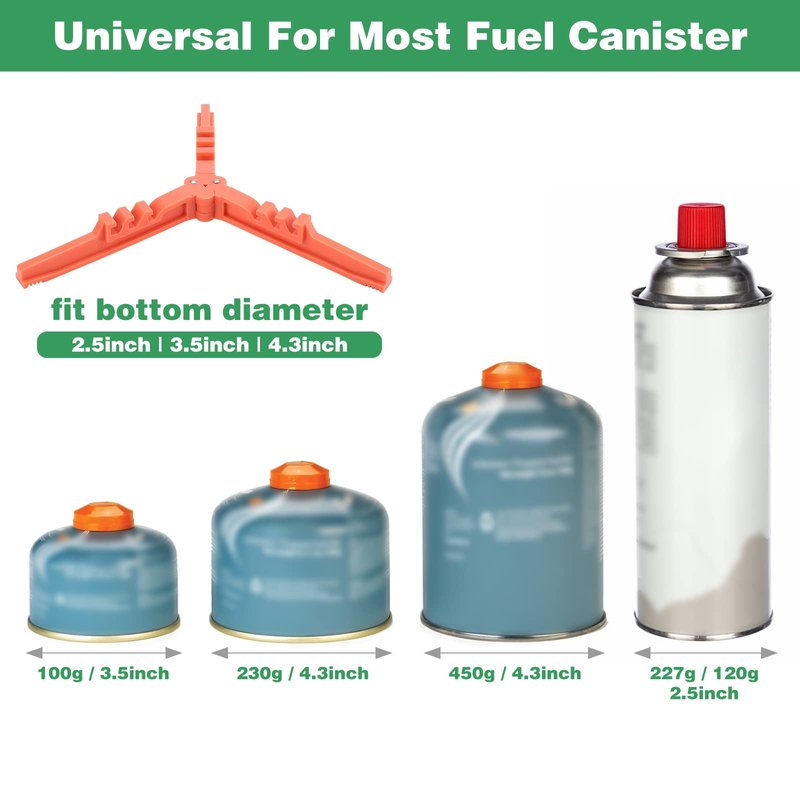 - 🥣Compact Fuel Canister Stand: Non-Slip design, made of strong plastic, making it durable, sturdy and easy to attach to the bottom edge of canistermore stable. The fuel can canister stand fits 2.5 inch/3.5 inch/4.3 inch diameter fuel can. Universal for most fuel canister.
