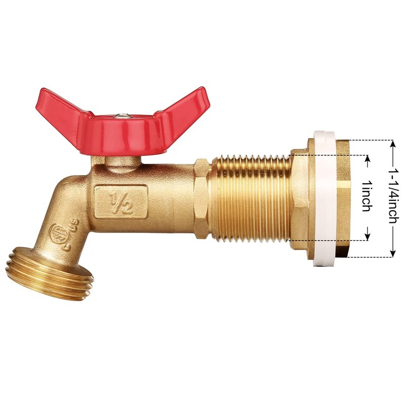 - 💧Heavy Duty 3.2 oz Solid Brass Bulkhead Fitting, 1/2" Female to 3/4" Male water tank connector bulkhead tank fitting. Heavy duty 3/4"water outlet no kink quarter turn solid brass ball valve can conntect with garden hose.