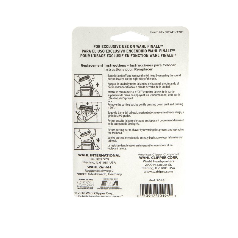 - PRODUCT SPECIFICATIONS: Wahl Professional 5 Star Replacement Finale Super Close Foil and Cutter Bar Assembly (#7043) Compatible only with the Wahl 5-Star Finale Shaver (#8164)