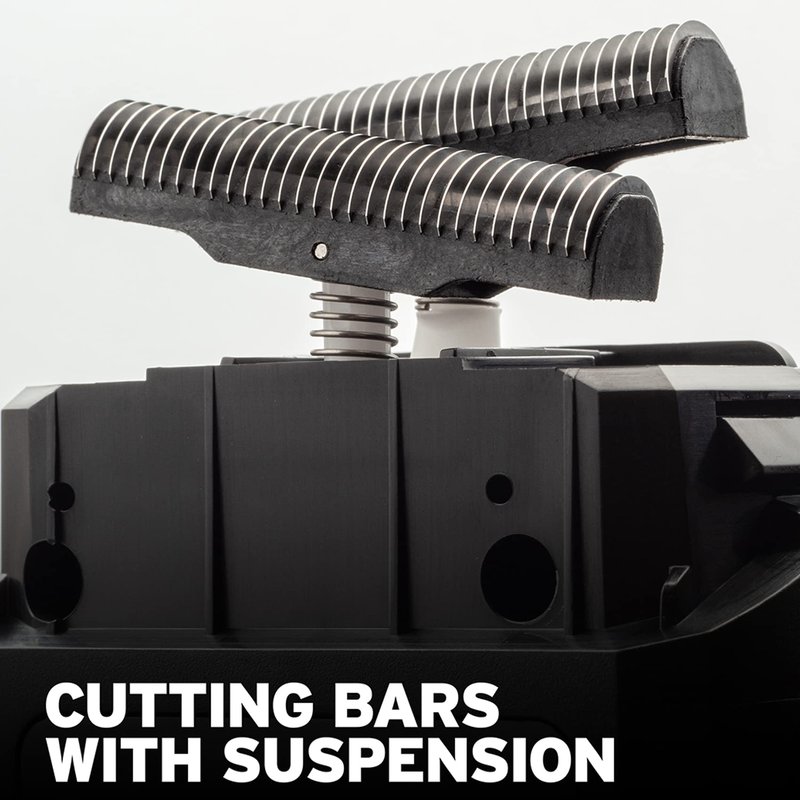 - The innovative dual suspension system allows the cutter bars to move independently, hugging every neck and facial contour to make every last hair disappear