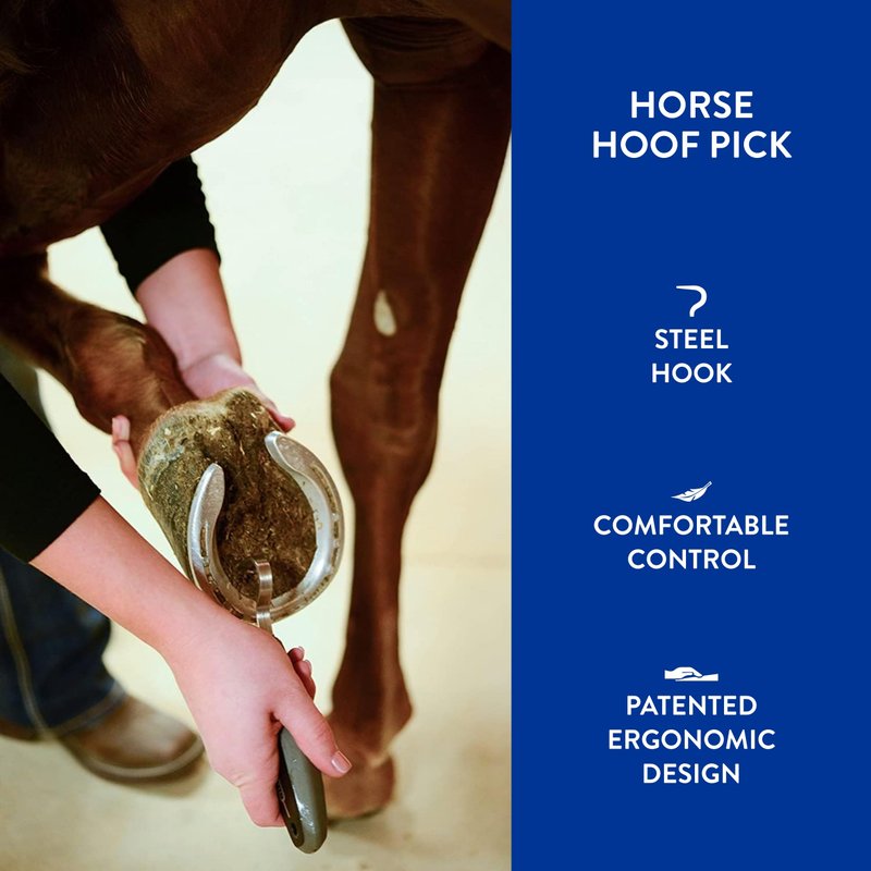 - Horse Hoof Pick: Wahl's Comfort Grip Hoof Pick is designed with reinforced steel for a strong hook that effectively removes packed dirt and mud from hooves