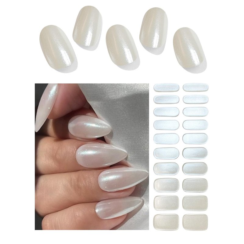 Wahrshei Semi Cured Gel Nail Strips, 20pcs White Pearl Shimmer Gel Nail Stickers Work with UV, Easy to Use and Remove