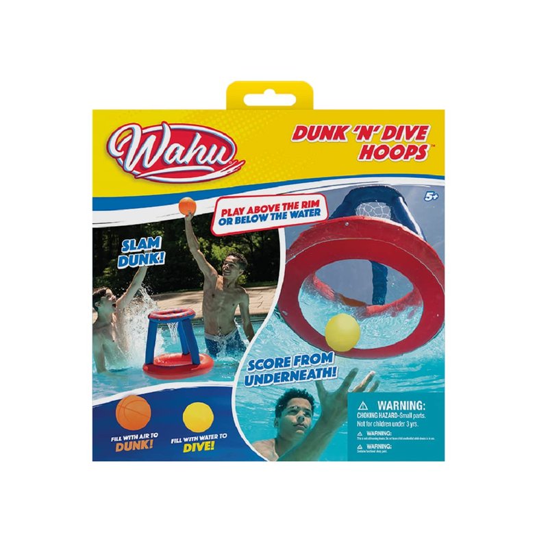Wahu Dunk 'N' Dive Hoops Swimming Pool Basketball Game Set with Portable Hoop and 2 Basketballs, Inflatable Water Basketball Hoop Set, Multicolor