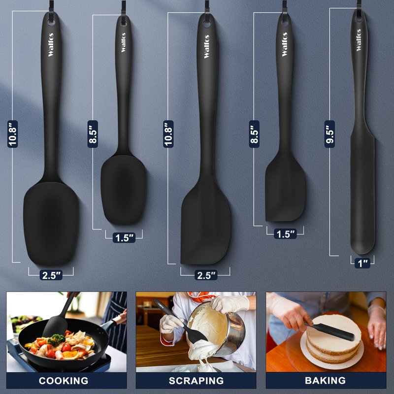 Walfos Silicone Spatula Set of 5 - (600°F) High Heat Resistant Kitchen Scraper Spatulas, One-Pieces Seamless Design, Perfect for Cooking Mixing & Baking - BPA Free and Dishwasher Safe,black