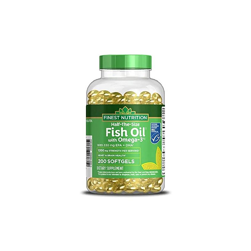 - Half-sized fish oil softgels. Supports heart & vascular health. USA wild caught Alaskan. Half-sized fish oil softgels. Supports heart & vascular health USA Wild Caught Alaskan Fish. With 330 mg EPA + DHA. Just ONE small softgel per day. Same omega-3x levels as a 1200 mg fish oil softgel, in a concentrated formula. as concentrated fish oil ethyl esters.