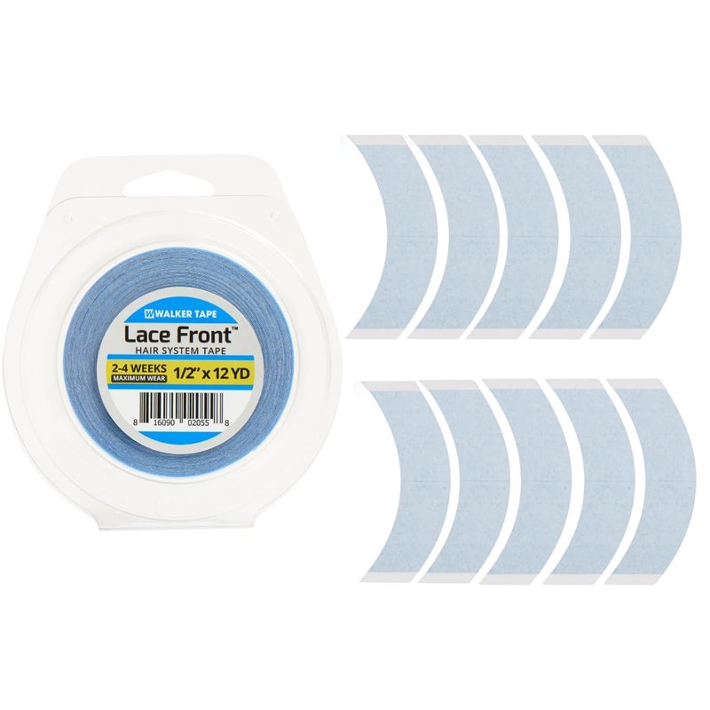 - 【PACKAGE INCLUDES】: 1 X 1/2" x 12 yd Lace front tape roll, 10 X CC curve tape strips, 2 X alcohol pads