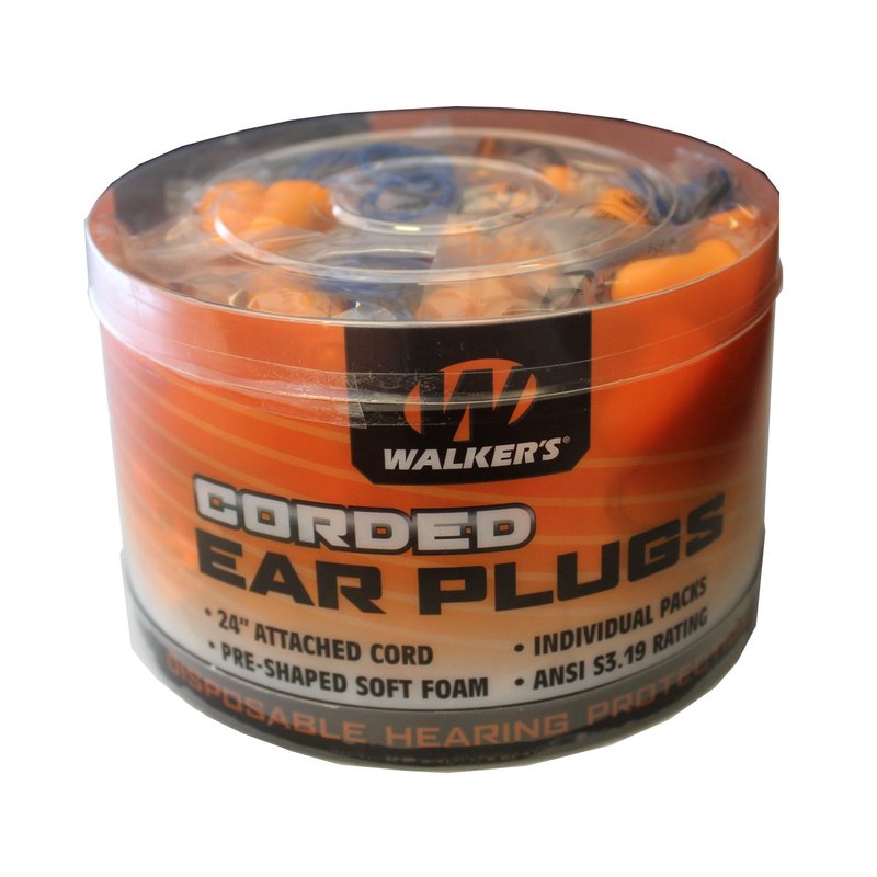 Walker's Corded Foam Ear Plugs Noise Reduction Rating 25Db/50 PK,Orange