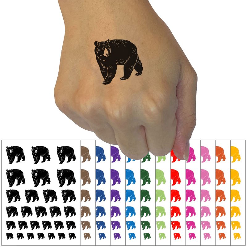 Walking American Black Bear Temporary Tattoo Water Resistant Fake Body Art Set Collection - Brown (One Sheet)