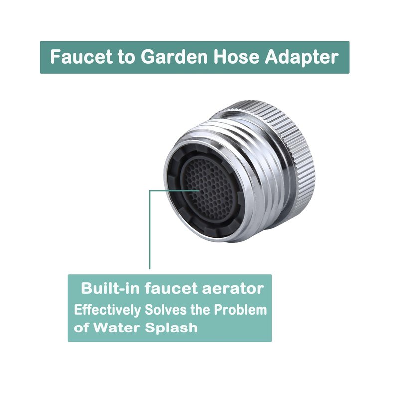 - FUNCTION: Unique design allows you to connect either a faucet or a standard 3/4" garden hose. Gives your faucet two functions. The built-in aerator prevents water from splashing when not connected to a garden hose and is practical enough to connect a garden hose without having to remove the aerator each time.