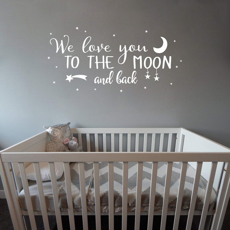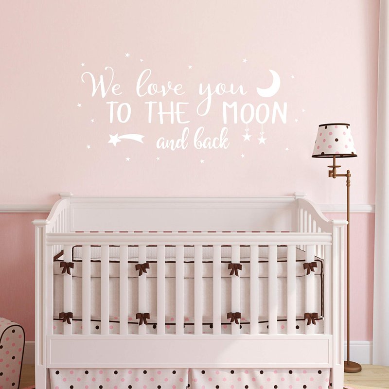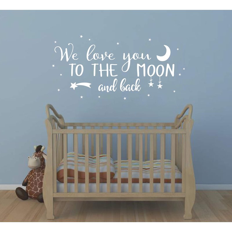Wall Decal Kids We Love You to The Moon and Back Quote Wall Decals Nursery Vinyl Wall Stickers for Baby Boys and Grils Bedroom Scandinavian Wall Decal (Y29) (White)