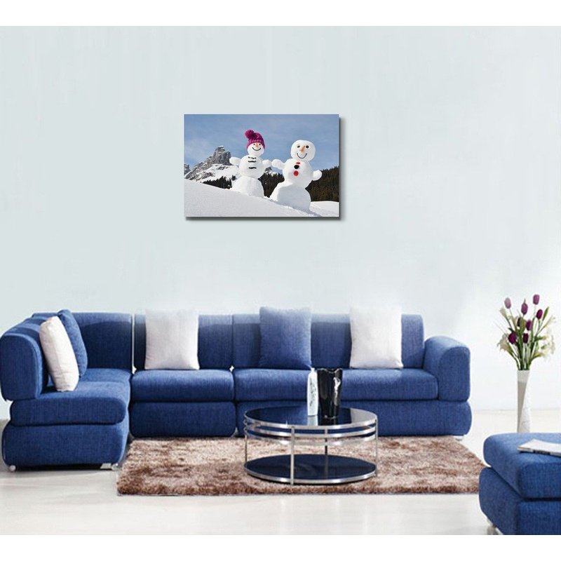wall26 - Canvas Prints Wall Art - Two Happy Snowmen on a Snowy Day in December | Modern Wall Decor/Home Decoration Stretched Gallery Canvas Wrap Giclee Print. Ready to Hang - 24" x 36"