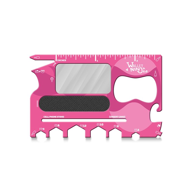 Wallet Ninja 2.0 (Advanced 20-in-1 Multitool, Now With Mirror + Nail File) (Pink)