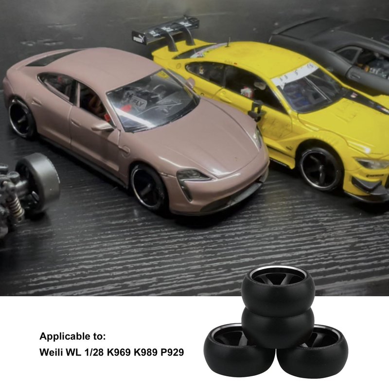 Walmine 4pcs RC 5 Spoke Wheel Drift Tyre Black Wheel Rims Replacement for WL 1/28 K969 K989 P929 RC Car
