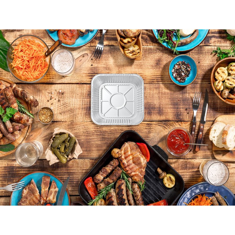 These premium versatile aluminum foil pans, Made from premium quality aluminum foil that is Recyclable, and Stackable for Convenient Storage, this makes them the perfect catering supplies for preparation, serving your guests and freezer storage. Our take out food containers come in a perfect square size at 8 x 8 x 2 inches, designed to hold and store your favorite cakes, bread, cookies, lasagna and so much more. Widely used for events, parties, bakery or food service facility, catering, schools, or camps.