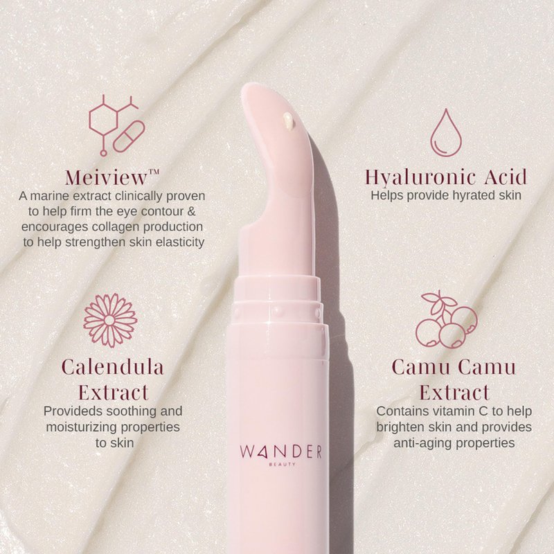 Wander Beauty Baggage Claim Everyday Eye Cream - Eye Serum for Dark Circles, Under-Eye Bags & Fine Lines - Hydrating Eye Cream with Hyaluronic Acid + Vitamin C Brightens, Tightens & Lifts - 0.5 oz