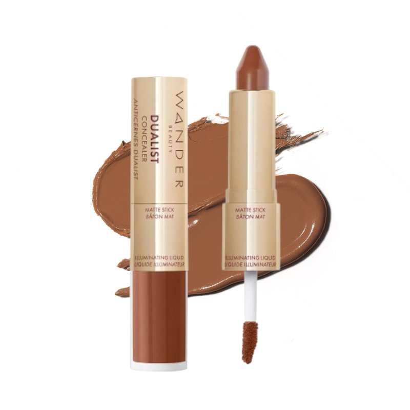 Wander Beauty Dualist Matte and Illuminating Concealer Makeup - Ebony - Dual-Ended Matte Concealer Stick + Liquid Concealer - Full Coverage Concealer Brightens & Hydrates Under Eyes - 0.28 fl oz