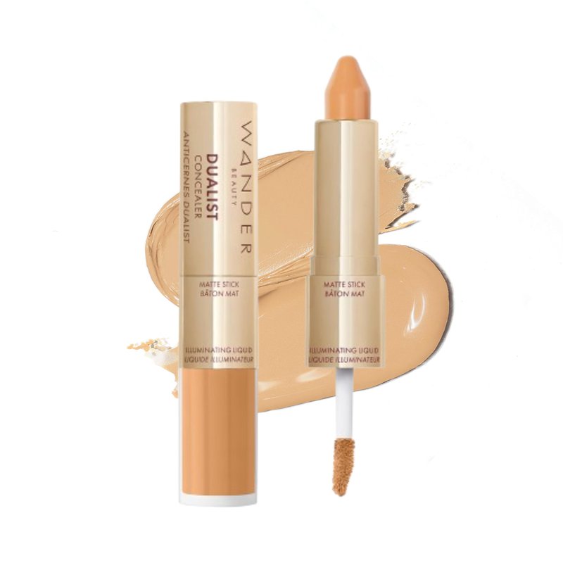 Wander Beauty Dualist Matte and Illuminating Concealer Makeup - Golden Medium - Dual-Ended Matte Concealer Stick + Liquid Concealer - Full Coverage Concealer Brightens & Hydrates - 0.28 fl oz