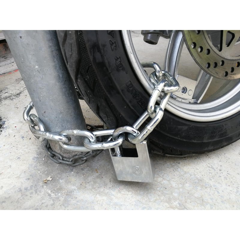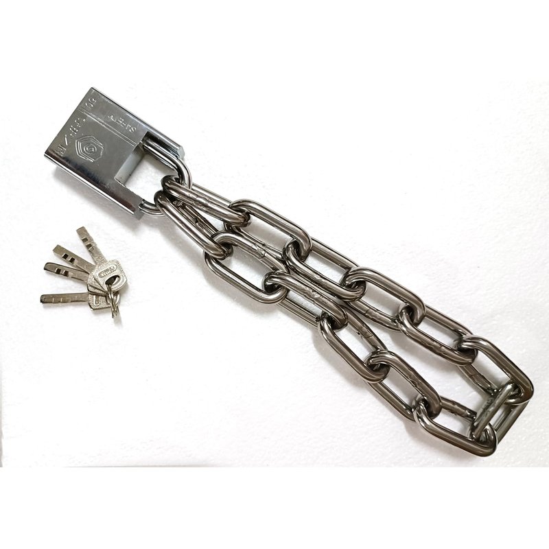 - SIZE:Chain thickness: 8mm, Length: 500mm. Package contains: (1)Padlock,(2)4 keys , (3)Hardened Steel Chain . HIGH SAFETY CHAIN LOCK – lock shackle and chain are made of specially hardened steel to resist bolt cutters and metal saws.