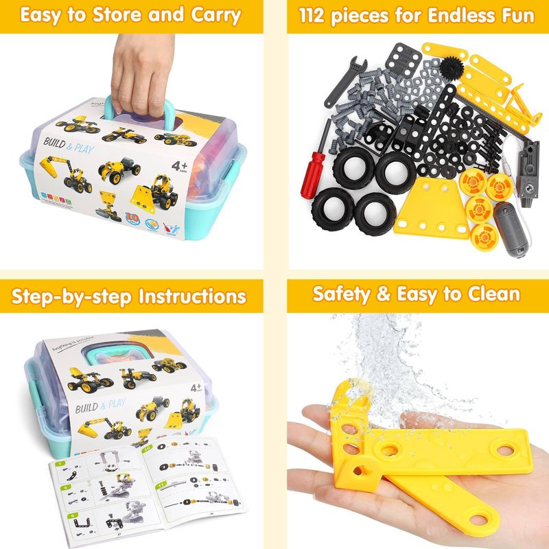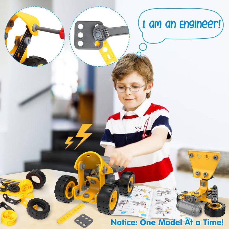 - Safety & Easy to Storage: Our building toys for kids ages 4-8 construction engineering boy toys are made of non-toxic ABS plastic and TPR material, easy to wash, durable, and contain no sharp edges, make sure your kids are 100% safe while playing. Stem activities for kids ages 5-7 come with a sturdy storage box for quick and convenient cleanups.