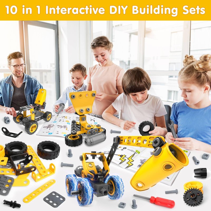 - 10 in 1 DIY STEM Building Sets: Stem kits for kids activities can be built into 10 different models including a bulldozer, excavator, tractor, motorcycle, convertible, and various other vehicle models. (Notice: one model at a time.) This science educational building toys set includes 112 pieces of building blocks to create any cool model. This building toy brings a fun way to learn and keeps your kids busy for hours with the help of step-by-step instructions.
