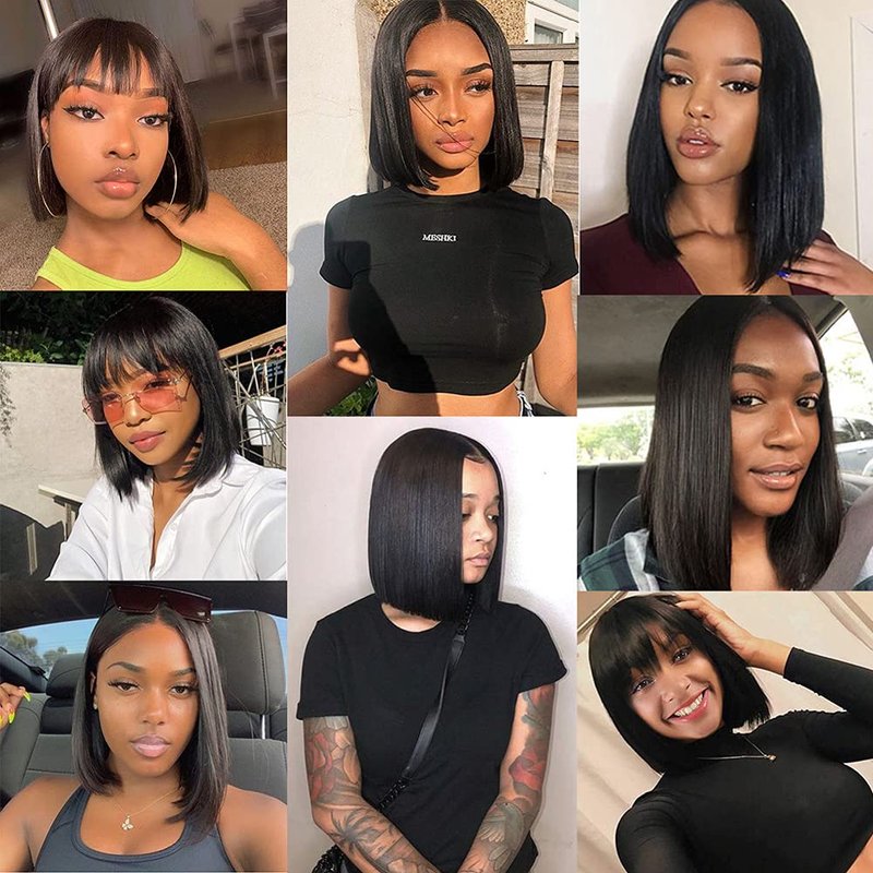 - Hair Texture: Short straight bob human hair wig, can restyle to other texture easily.