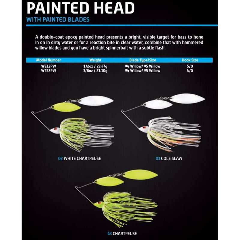 War Eagle Custom Lures Painted Head Spinnerbait Fishing Lure, White Chartreuse, Painted Double Willow (1/2 oz)