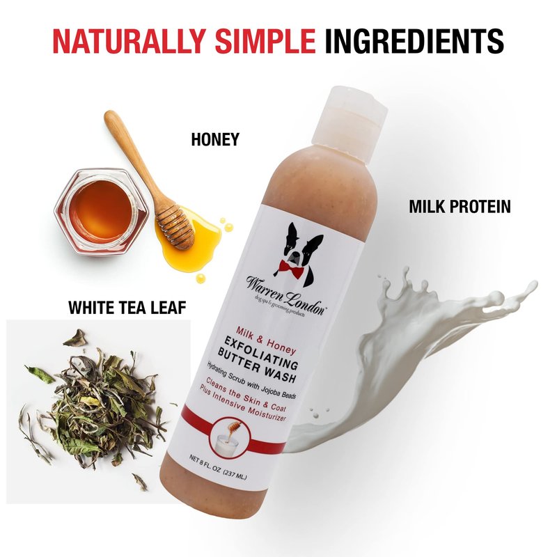 - Clean, Exfoliate, & Hydrate with Exfoliating Butter Wash - This premium shampoo hydrates your canine’s skin and coat with premium ingredients, such as Jojoba beads and botanical extracts for a healthy shine.