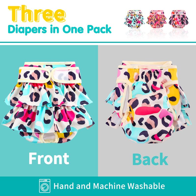 Washable Dog Diapers Female 3 Pack Reusable Premium Highly Absorbent Doggie Diapers, Flexible Puppy Diapers, Durable Leak-Proof Leopard Dog Diapers for Period Heat Incontinence Puppy Training, XS