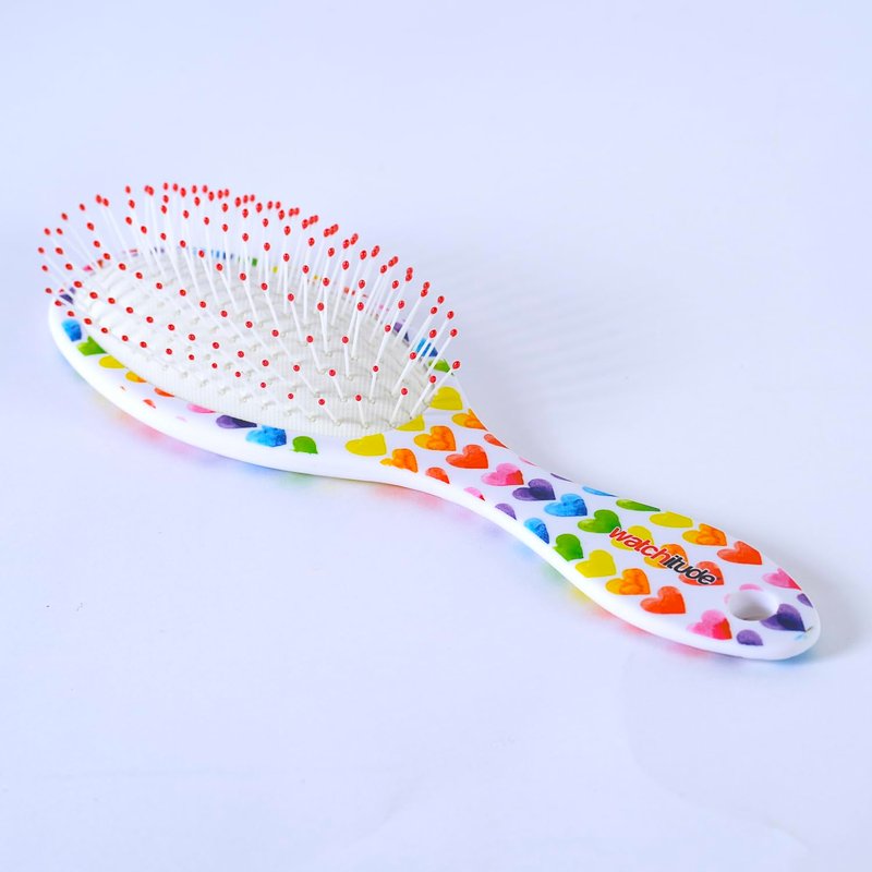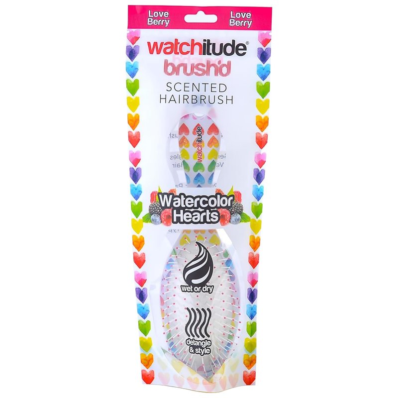 Watchitude: Scented Hair Brush - Watercolor Hearts - Kids Berry Scented Stylish Brush, Wet Or Dry Hair, Durable Bristles, Soft Touch Rubberized Finish