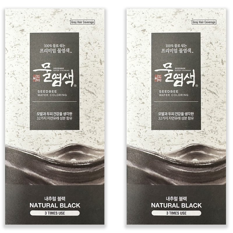 Water Coloring, Hair Dye Powder Mix with only Water, 32 Herbal Ingredients for Healthy and Shinny Hair. (Natural Black, pack of 2