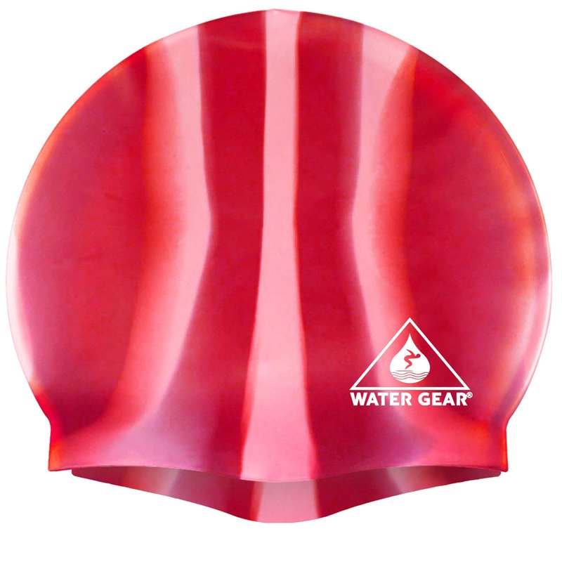 Water Gear Jazz Silicone Swim Cap - Flexible Unisex - Great for Short and Long Hair - Improve Your Performance (RED/White, One Size)