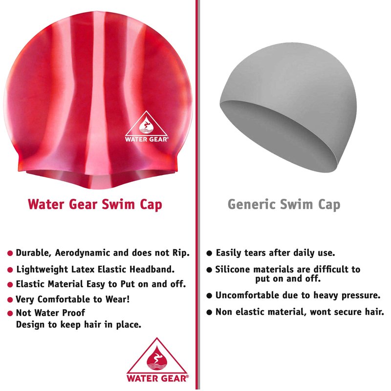 Introducing the Water Gear Synthetic Fiber Swim Cap - Your Ultimate Comfort and Durability Solution for Swimming! Dive into the world of swimming with the Water Gear Synthetic Fiber Swim Cap, the perfect companion for all your aquatic adventures. Whether you're a seasoned swimmer or just dipping your toes in the water, this swim cap promises an unparalleled experience that combines comfort, durability, and functionality. Say goodbye to uncomfortable swim caps that leave you distracted during your swim. Our swim cap boasts a lightweight design that ensures maximum comfort without compromising on performance. The elastic fiber and unique stretch offer a snug fit that keeps water out, so you can focus solely on perfecting your strokes. Unlike traditional rubber and silicone swim caps, our large swim cap crafted from high-quality lycra material effortlessly conforms to the unique shape of every head. Enjoy a secure, personalized fit every time you hit the water. The Water Gear Synthetic Fiber Swim Cap is engineered to outlast traditional silicone and rubber caps, providing you with reliable performance for years to come. Simply ensure proper drying after each use, and this neon wonder will remain your swimming companion for countless aquatic escapades. Tired of dealing with tangled and knotted hair after swimming? This swim cap material is a game-changer. Unlike sticky silicone caps, our synthetic fiber cap will not cling to your hair, making it a breeze to put on and remove without any unwanted hair-pulling. If you're a competitive swimmer, this cap will be your ultimate secret weapon. Compatible with silicone swim caps, our swimming cap for women with long hair allows you to enjoy enhanced comfort and peak performance during competitions. Are you ready to elevate your swimming experience to new heights? Experience unmatched comfort, durability, and hair protection with the Water Gear Synthetic Fiber Swim Cap. Dive in today and enjoy the freedom to swim without limits!