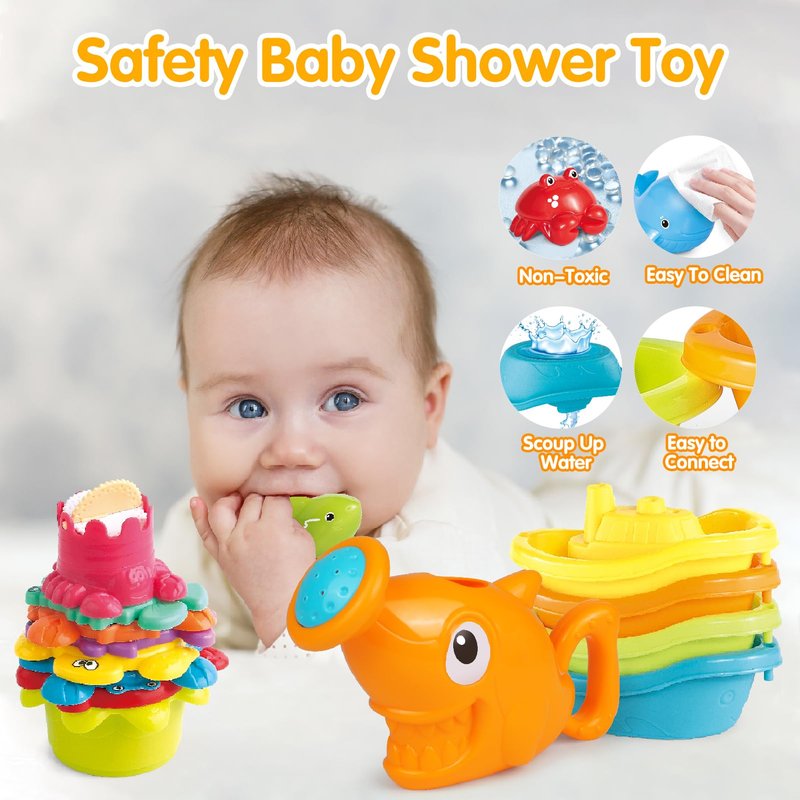- Safety & Easy Clean: Made of high quality plastic material without odor or any sharp edges.These bath toys for babies 6-12 months are lightweight and safe enough for kids to stack and tap. Bath toy boats are easy to grip. We have a leaking design that makes the bath toys dry immediately and easy to clean to ensure the toddler's safety!