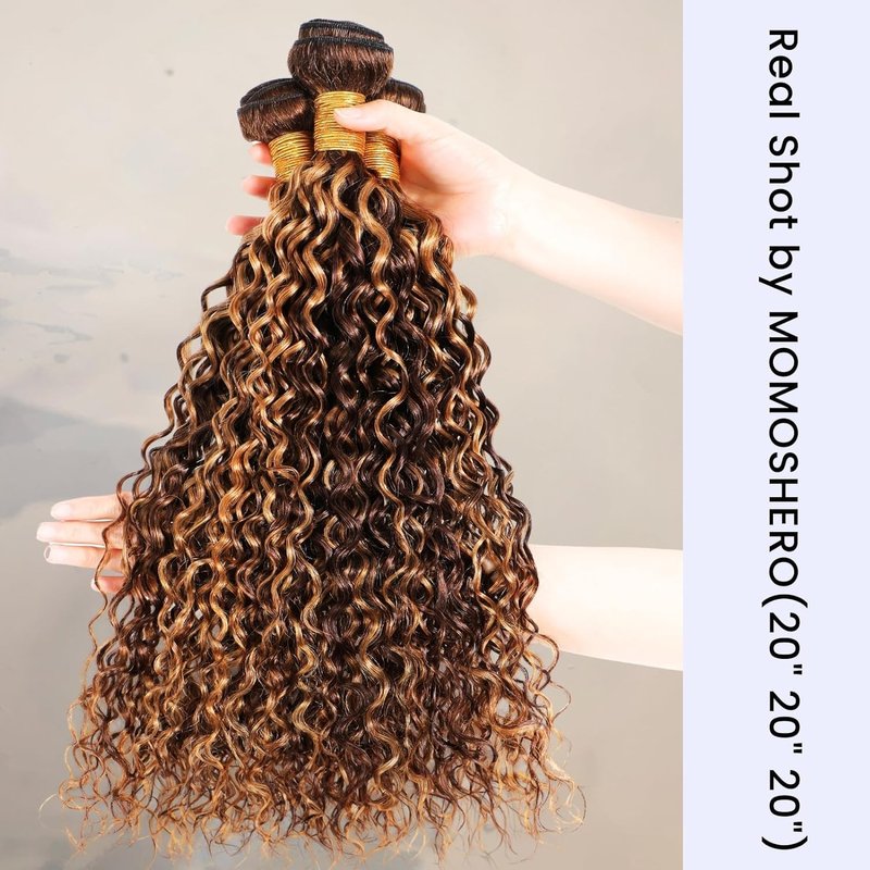 - 🤎Gorgeous Honey Blonde Piano Color: Add a glamour with our water wave human hair bundles in a stunning blend of medium brown and 30% gold honey blonde, captivating highlights create an enchanting, shiny look that seamlessly blends with your natural hair. Perfect for women loving a touch of flash & elegance! Note: It may appear darker when received but lighten to a beautiful highlighted ombre once styled.