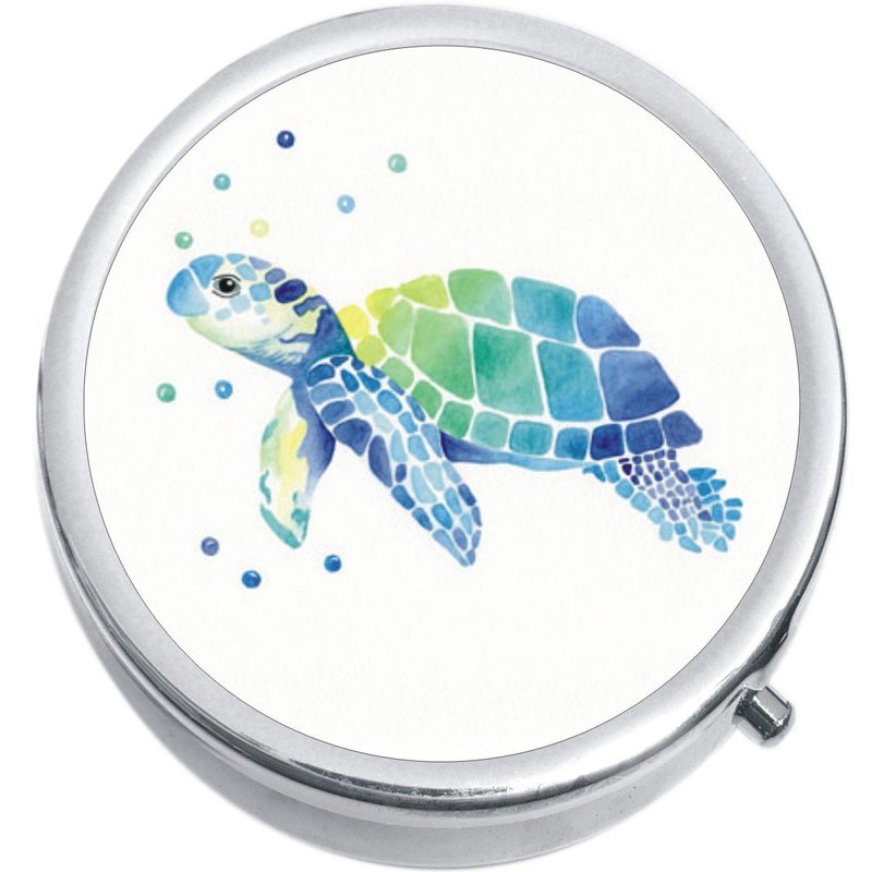 Watercolor Sea Turtle Medicine Vitamin Pill Box - Portable Pillbox case fits in Purse or Pocket