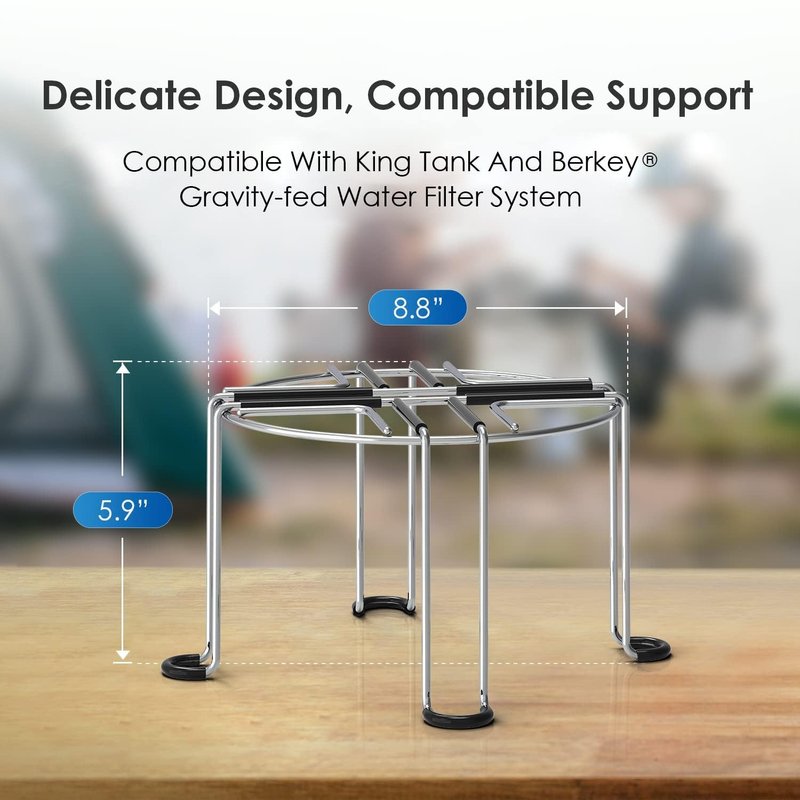 Waterdrop Water Filter Stainless Steel Stand, with Rubberized Non-Skid Feet, Replacement for Berkey water filter system, King Tank Gravity-fed Water Filter System Compatibility: With a precise modern design, you can expect replacment for King Tank Series and Travel, Big, Royal, Imperial, Light, Crown Berkey gravity-fed water filter system. Convenient access to clean water: Here is a gravity water filter stand that makes it even easier to access purified water. Now you can worry less about having a water filter on your table or mistakenly knock over a water glass. Made to be strong with no deformation: The extra-durable 304 stainless steel material has anti-corrosion and anti-wear properties. This stainless steel wire stand can also withstand up to 220 pounds of weight without deforming. It is made to last! Non-skid design: The base and surface of this product have an non-skid design to remove the chances of slipping or shaking. As a result, this stand is safer to use for everyone. Multiple applications: The convenient experience is suitable for every scenario and situation. You can have this filter system stand in your home, RV, or even on a trip.