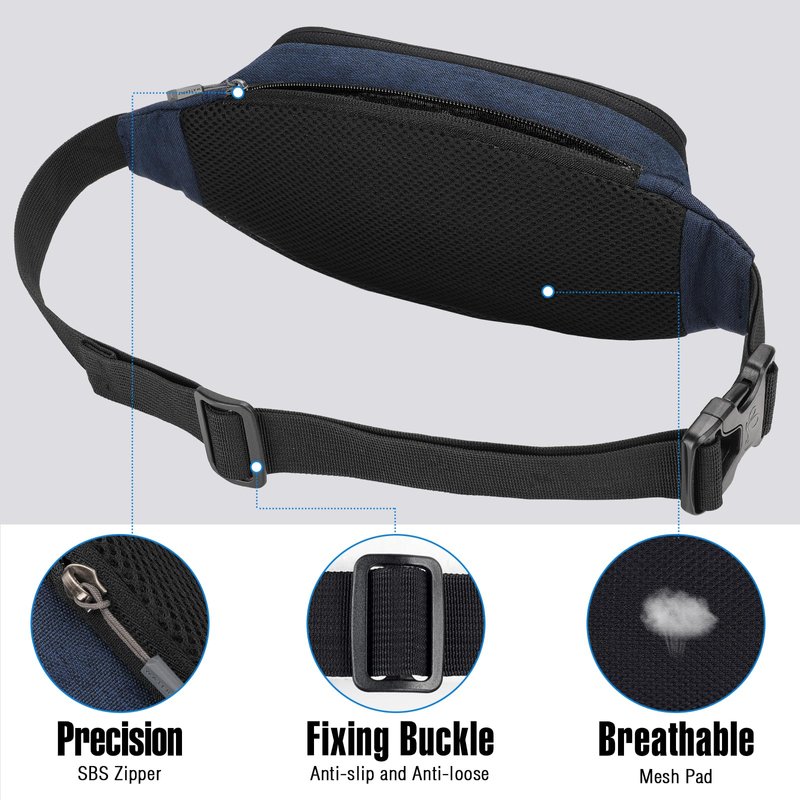 - Adjustable Waist Belt: The belt adjustment extent of this large waist bag is 15.8-49.2in, also comes with an 11.8in the extended belt, you can easily be adjusted to the ideal length that fits your body perfectly and the fixed buckle can hold the excess belt firmly to prevent the belt bag from loosening and slipping off