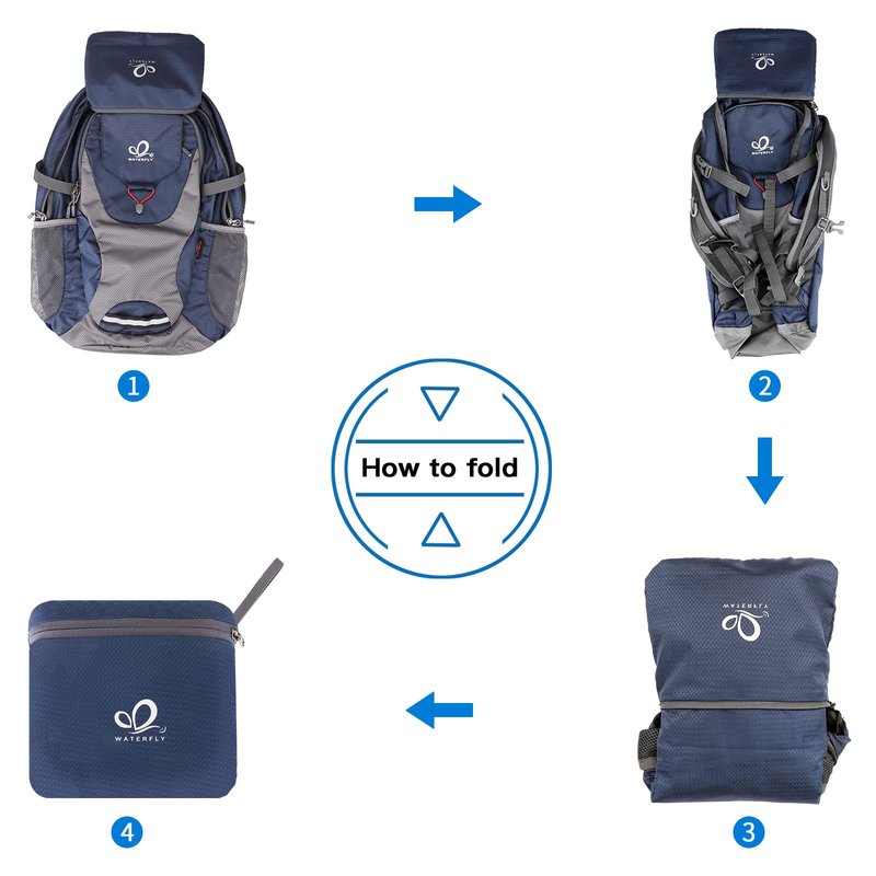 WATERFLY Lightweight Packable Hiking Backpack: Foldable Travel Daypack Ultralight Camping Day Pack for Woman Man