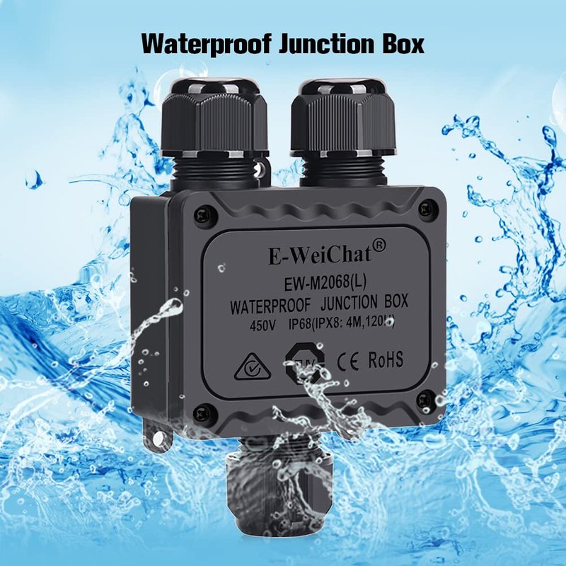 - Waterproof IP68 Outdoor Junction Box: Junction box outdoor waterproof ip68 is 3 wires (3-pole) M25 connector. IP68 high-level waterproof class, moisture-proof, dust-proof, anti-UV. 3 Way Plastic Terminal, can be installed horizontal and vertical as an external junction box, widely used in outdoor waterproof facilities, street light, buried light, garden light, outdoor floodlight, etc.