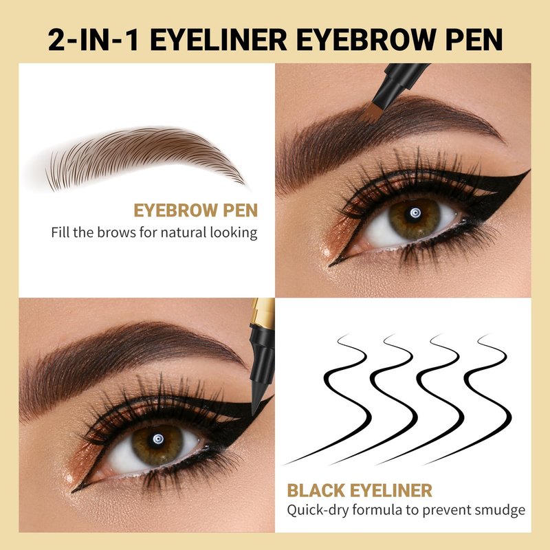- 【CONVENIENT TRAVEL】The dual-ended eyebrow pen provides pretty eye makeup with natural looking brows and bold eyeliner for you, easy to carry in the bag and reduce the storage places when you traveling and on business.