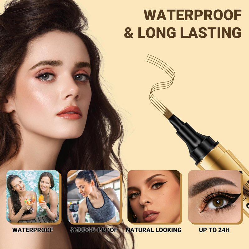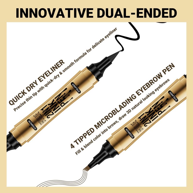 - 【DUAL-ENDED EYEBROW PEN & EYELINER】The microblading eyebrow pen combined with eyeliner pencil, 4 tipped precise eyebrow pen build the natural looking brows and the quick-dry eyeliner for the bold eye makeup, building the charming eyes in one pen.