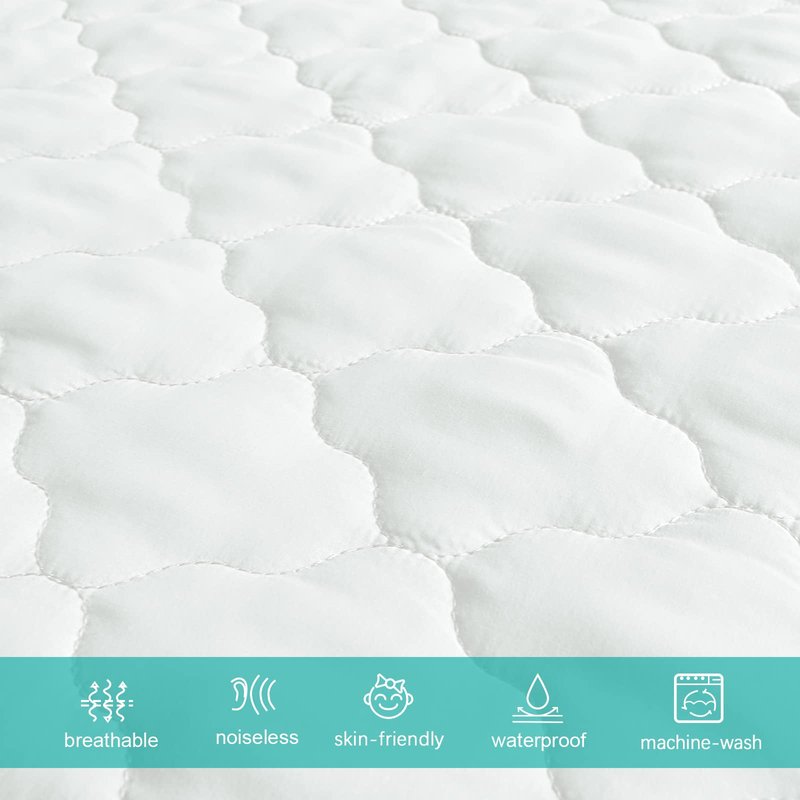 - Premium Protection: Our quilted mattress protector with extra thick padding for your little feel comfortable. Our waterproof layer is made of food-grade TPU that won’t make a crinkly plastic noise when your baby moves, and against everyday liquids and stains.