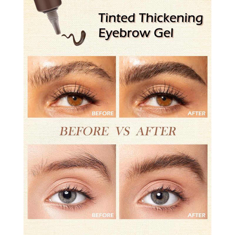 - EASY TO APPLY & CLEAN - The Tinted Thickening Eyebrow Gel can quickly define the shape of the eyebrows. Add a folding eyebrow razor and eyebrow brush, meeting your eyebrow trimming needs. Even beginner can easily draw delicate and beautiful eyebrows. This brow pencil can be easily removed using makeup remover oil.