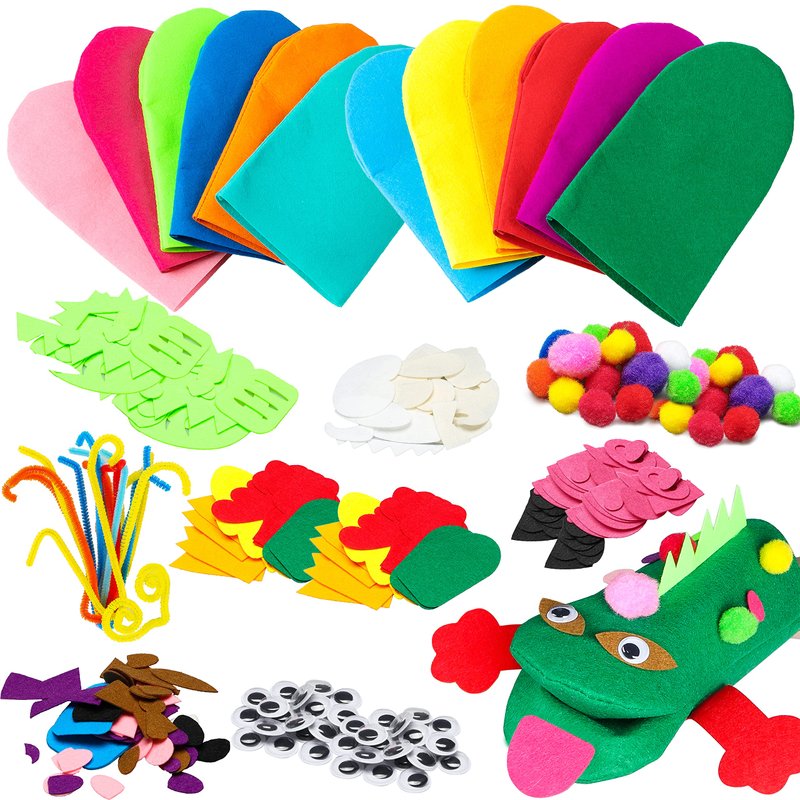 - SUPER KIT - Package comes with 12 pcs colorful hand puppets, pipe cleaners, pompoms, googly eyes, felt decors.