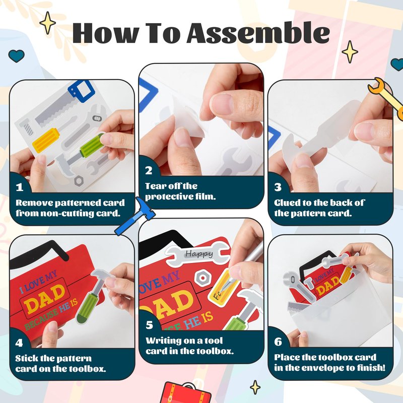 - What You Can Get: You will receive 24pcs crafts, including 24pcs tool patterns non-cutting cards, 24pcs red tool box cards, 24pcs envelopes, and 24pcs transparent dotted glue. These can satisfy your needs in your art class!