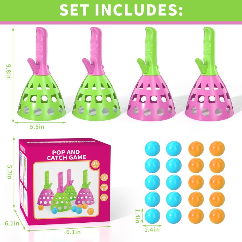 - Experience The Fun Of Pop Pass Catch Game - Bounce Up, Catch! Children just need to put the ball into the receiver, and then simply press the switch, and the ball will automatically bounce (you can bounce more balls at a time), in the meantime, Other children can catch the ball while running. It's so much fun to compare who catches more balls! No batteries required, 100% kid-powered launch and outdoor fun. Perfect indoor outdoor outside toys pop pass catch ball game for kids boys ages 3-5 4-8.