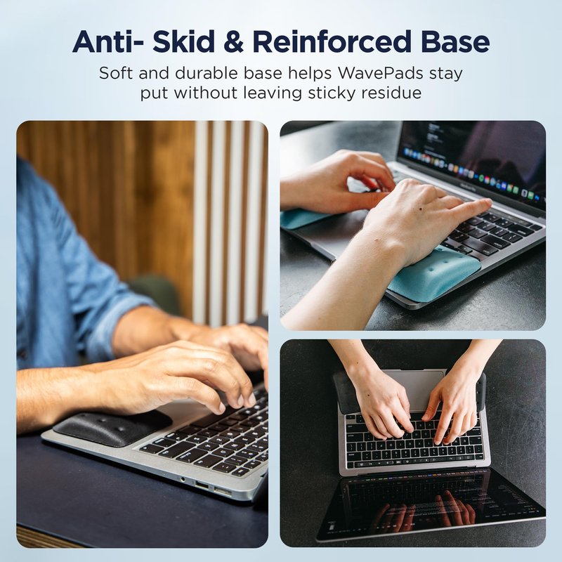- 【Adhesive Free & Repositionable】WavePads’ feature plastic laptop palm rests which allow full track-pad access, and unlike most wrist rests, can be easily repositioned for use with separate keyboards & mice without adhesive residue.